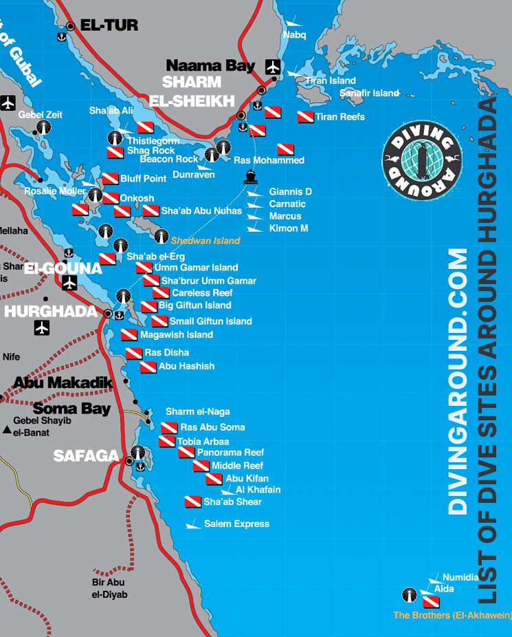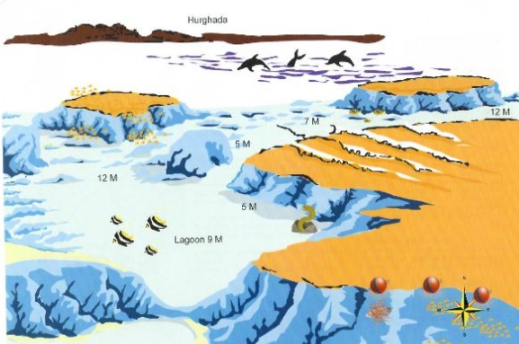 In the northern region of Hurghada lies an extensive reef that offers several distinct locations to explore. Among them: